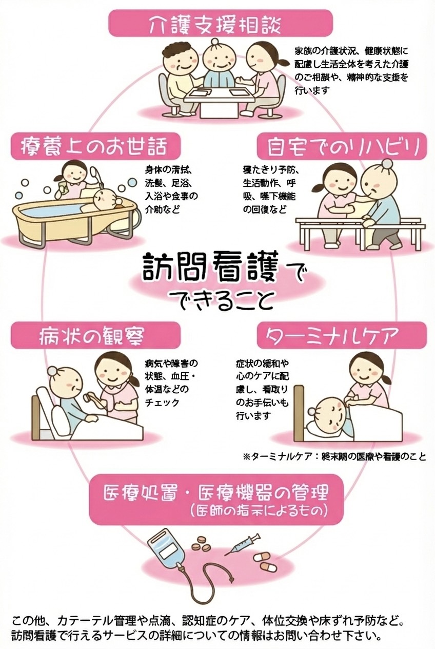 ・かかりつけ医やケアマネジャーがいない方は、直接当ステーションまでご連絡ください。